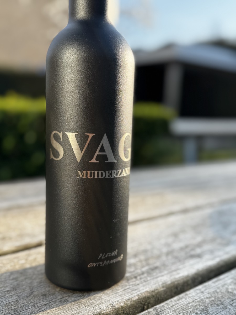 Bij Onuitwisbaar.nl kun je deze fles laten graveren met een naam, korte tekst of logo.